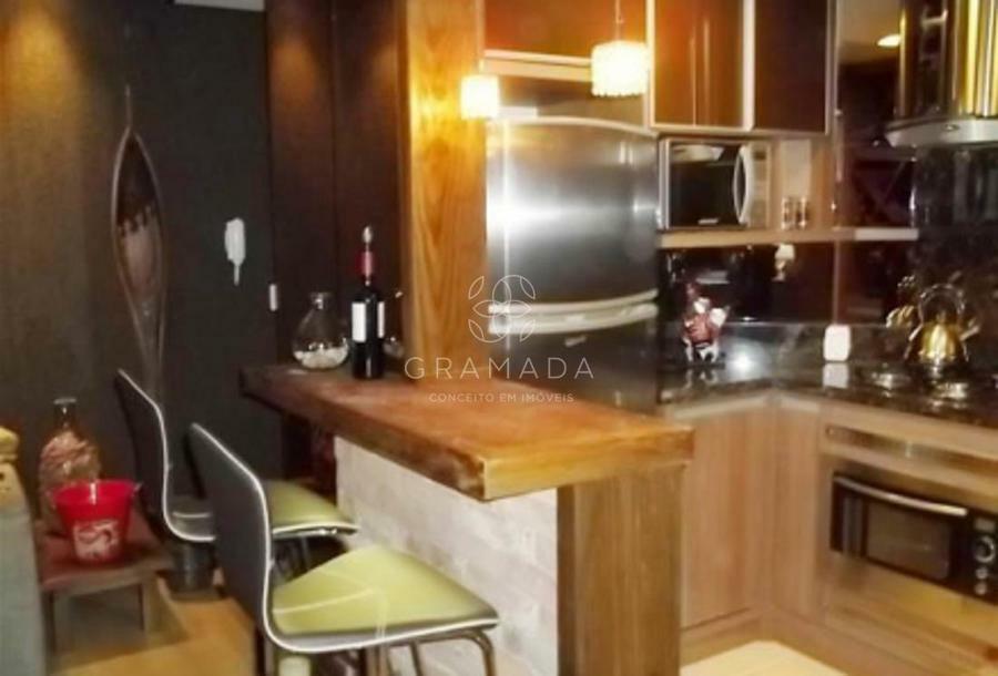 Apartamento 01 dormitório, living 02 ambientes com lareira, cozinha americana com churrasqueira, lavandeira, calefação e água quente instaladas, 01 box de garagem.