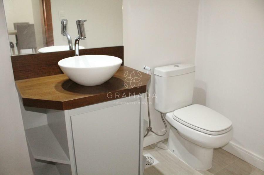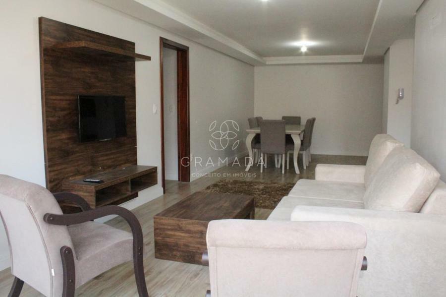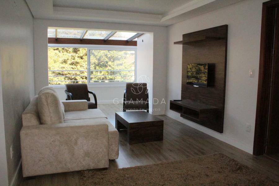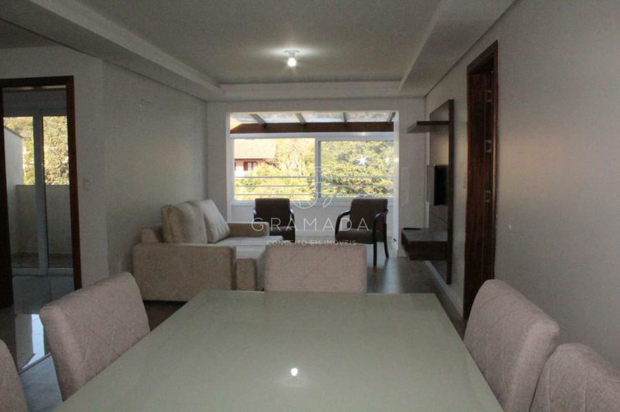 Apartamento semi-mobiliado, com 3 dormitórios sendo 2 suítes, sala com dois ambientes, banheiro social, lavabo, área de serviço, cozinha integrada com churrasqueira, esperas de split e split instalado na suíte principal e duas vagas na garagem. Residencial localizado no centro de Gramado.