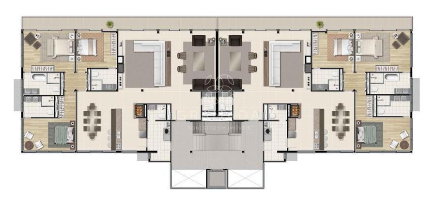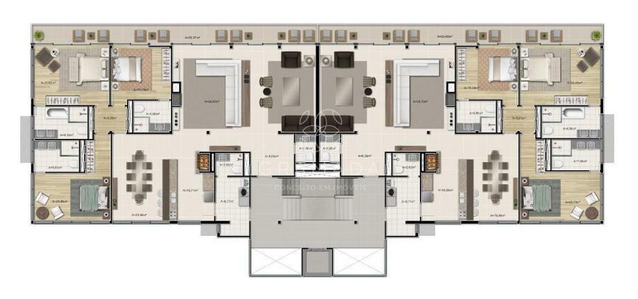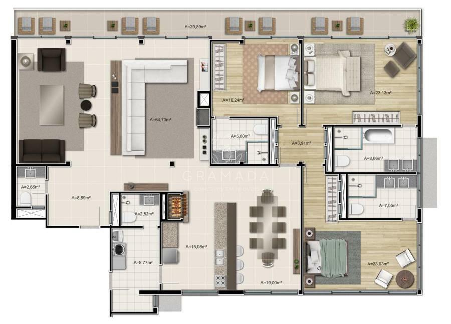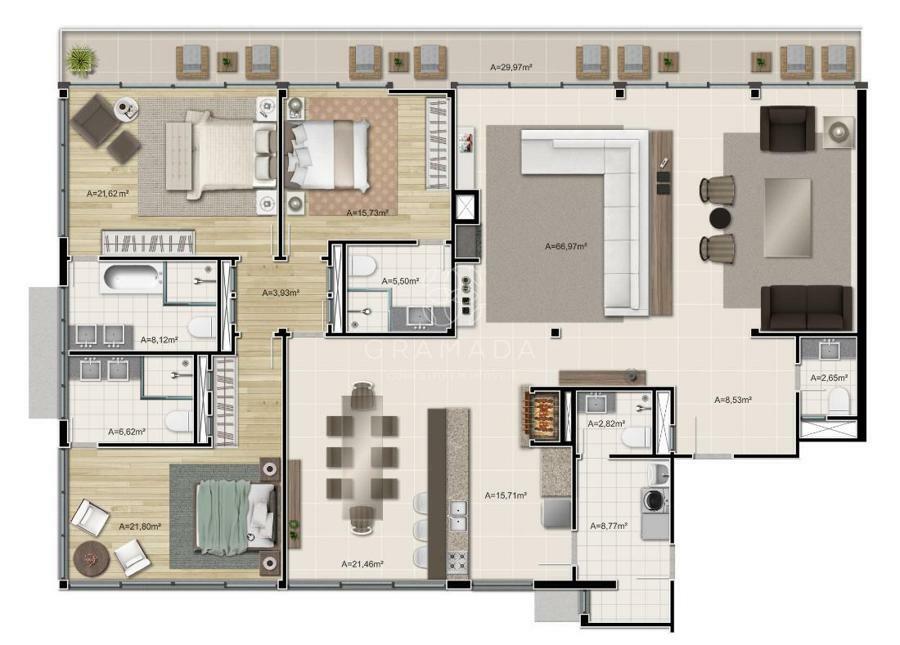 Apartamento com 313m² privativos, 3 suítes, ampla sacada, área social com 3 ambientes, lareira, jantar com espaço gourmet com churrasqueira, lavabo, lavanderia separada com banho de serviço, vidros duplos, sistema de calefação e split instalados, 2 vagas de garagem e 2 estacionamentos, elevador panorâmico.