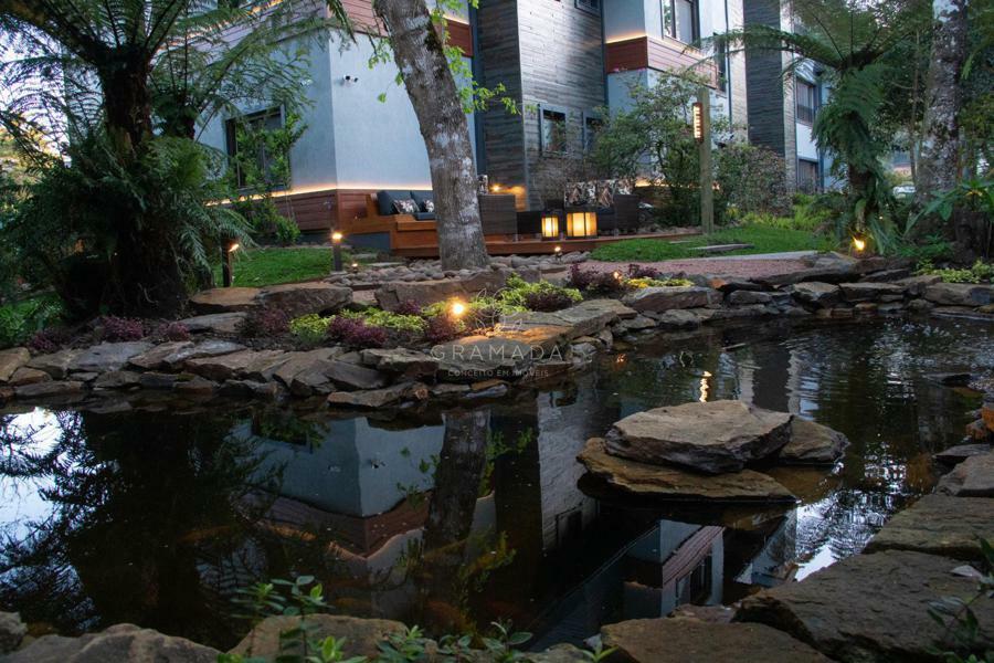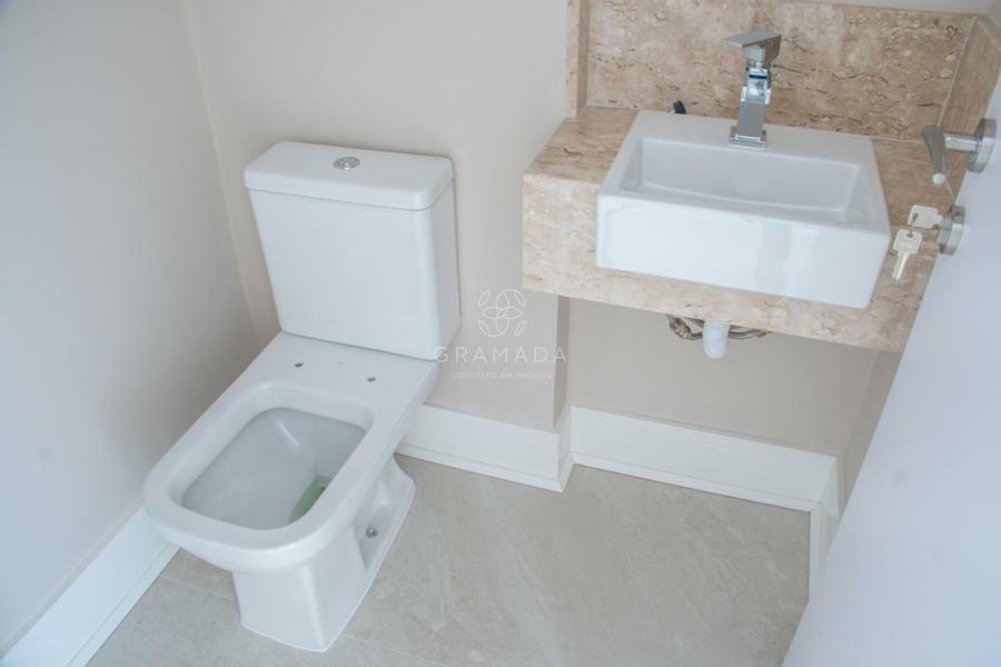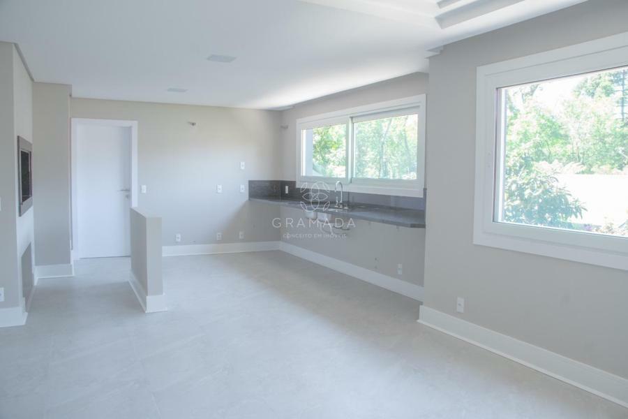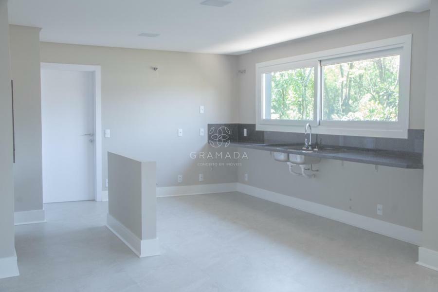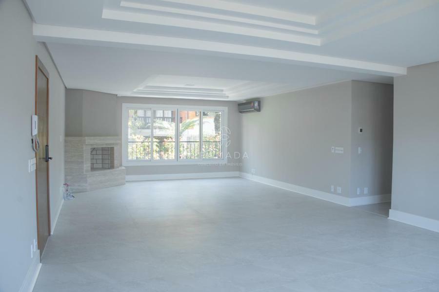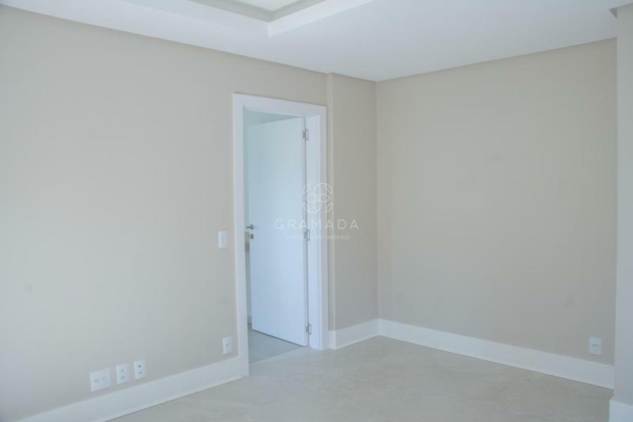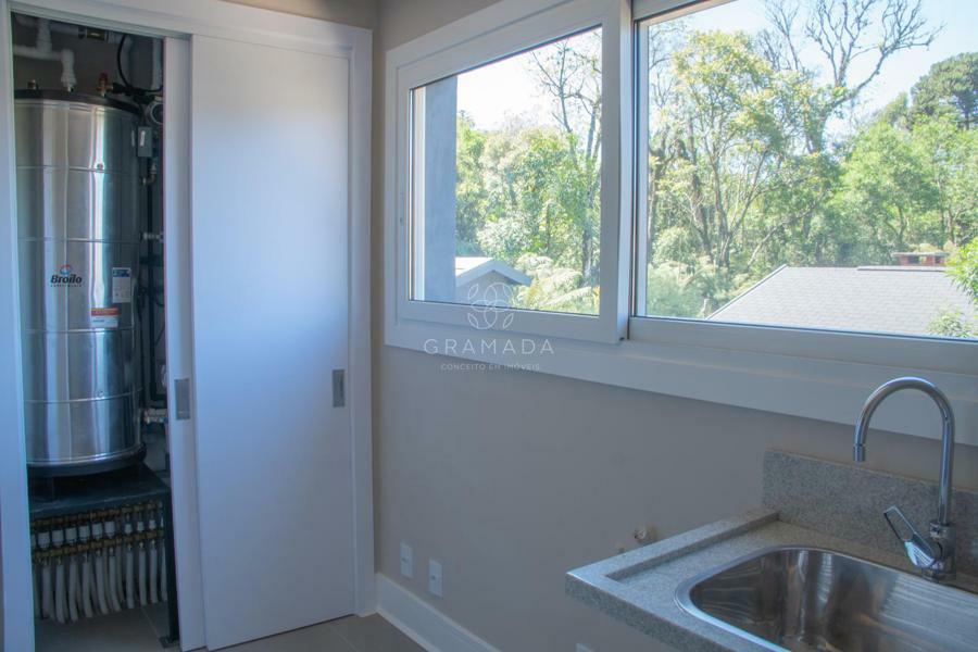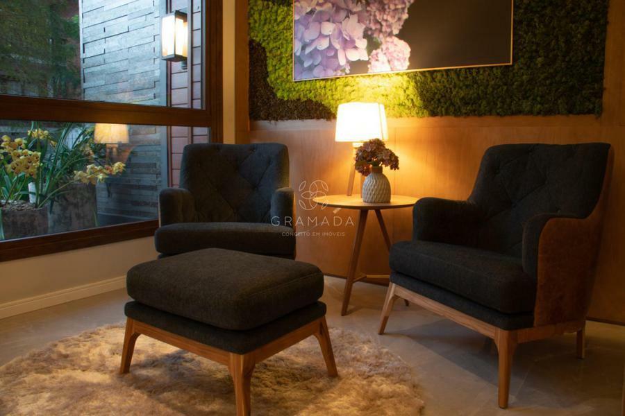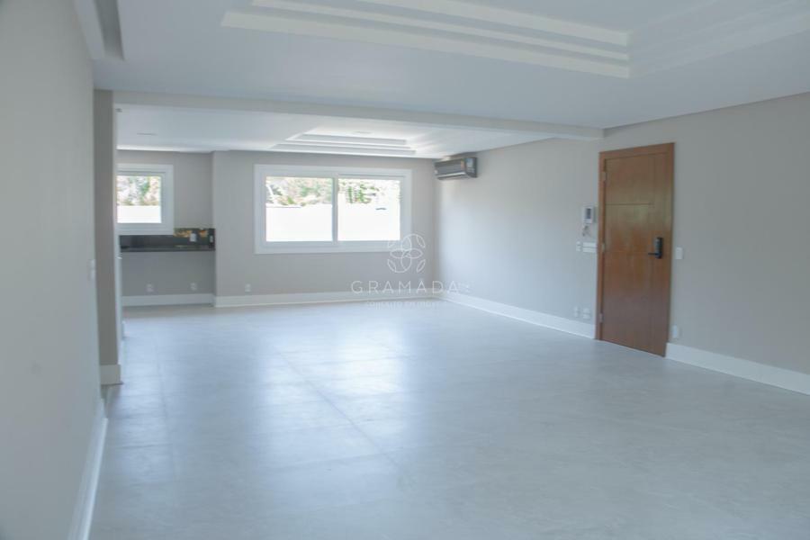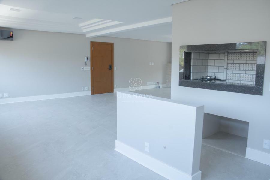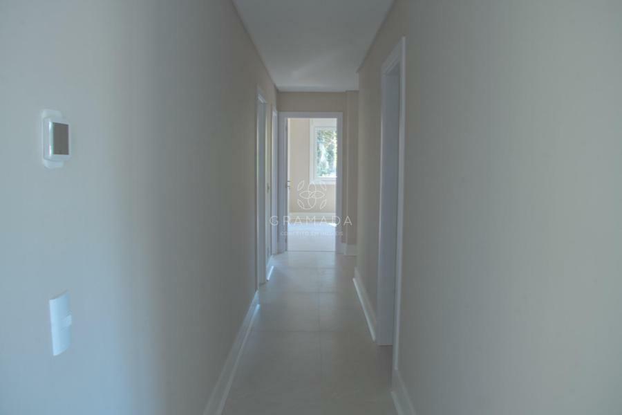 Ampla cobertura composta Ampla sala de estar com lareira, sala de jantar, cozinha, churrasqueira,área de serviço, despensa e três suítes. Esperas para split e sistema de calefação. Um diferencial interessante sobre o imóvel é que ele divide-se em duas partes, onde as suítes ficam dispostas da metade para um lado e as demais áreas sociais da metade para o outro, ambas ligadas por um corredor de acesso.