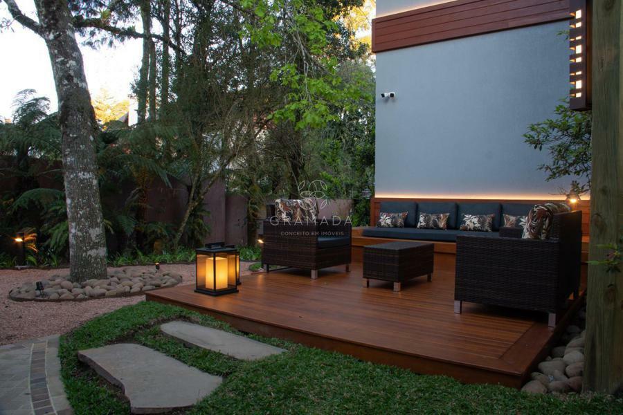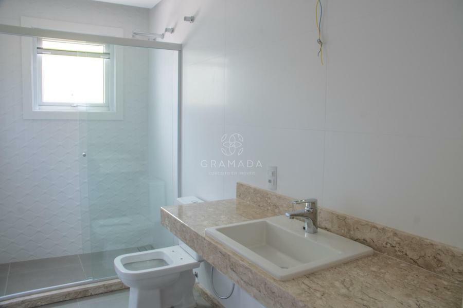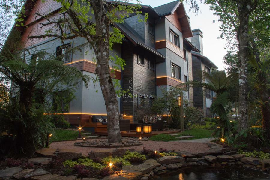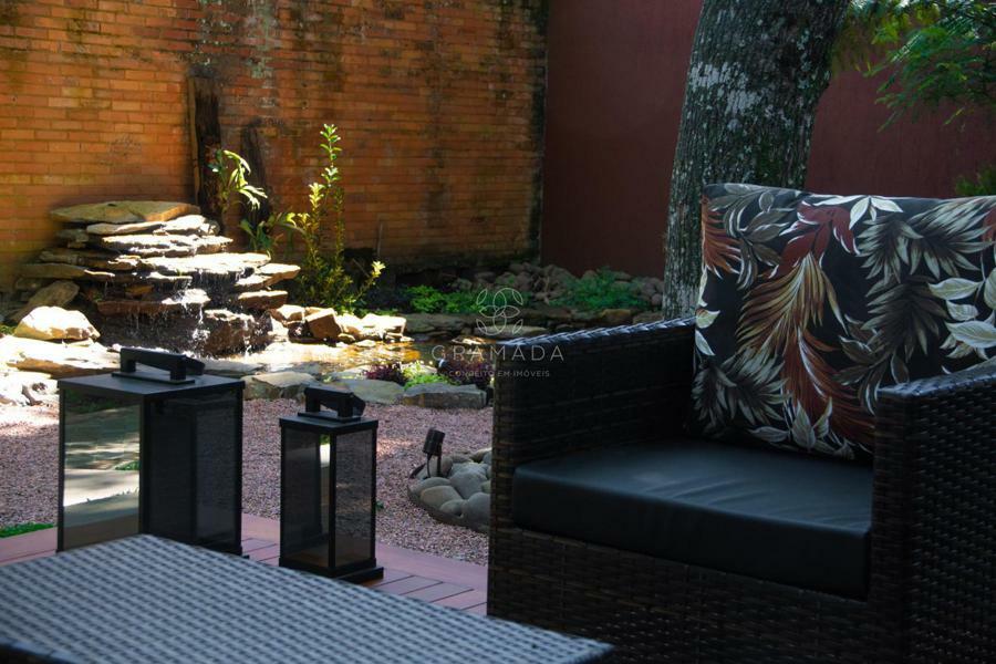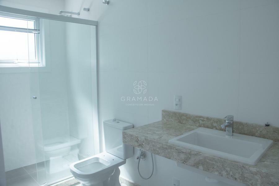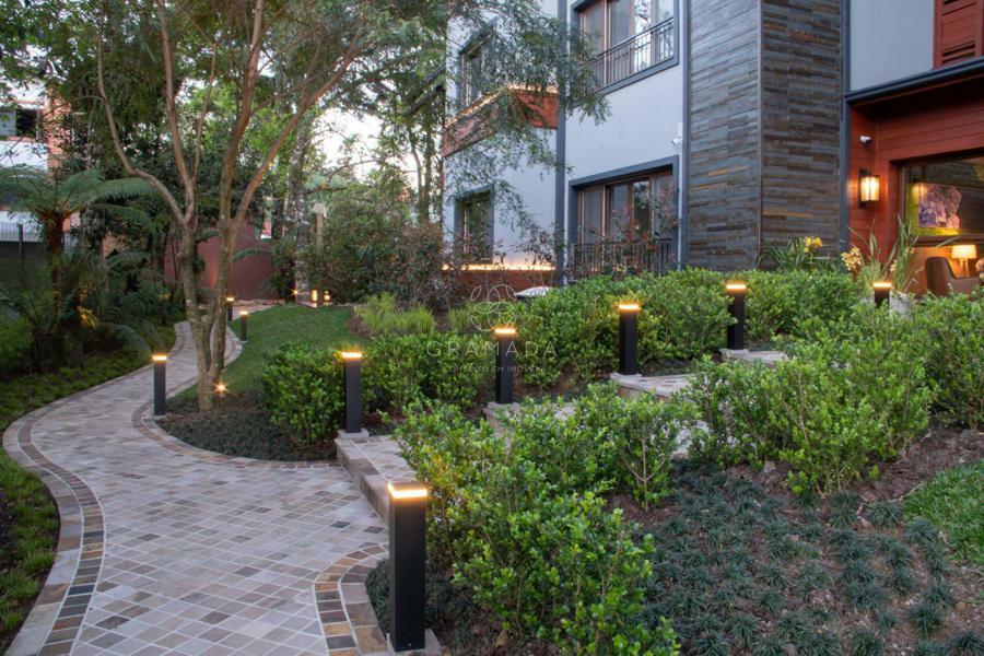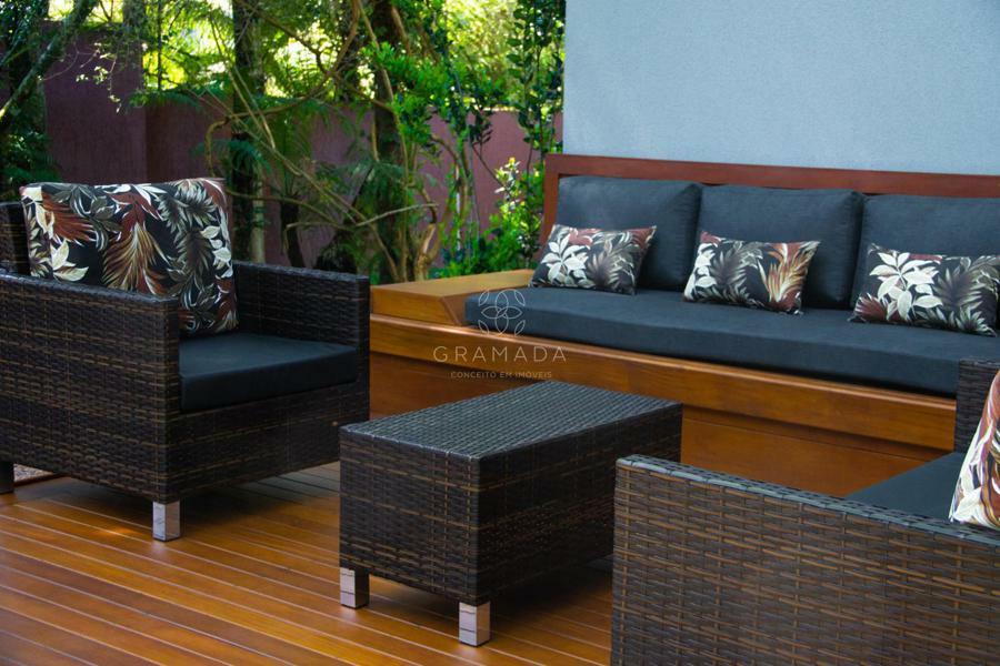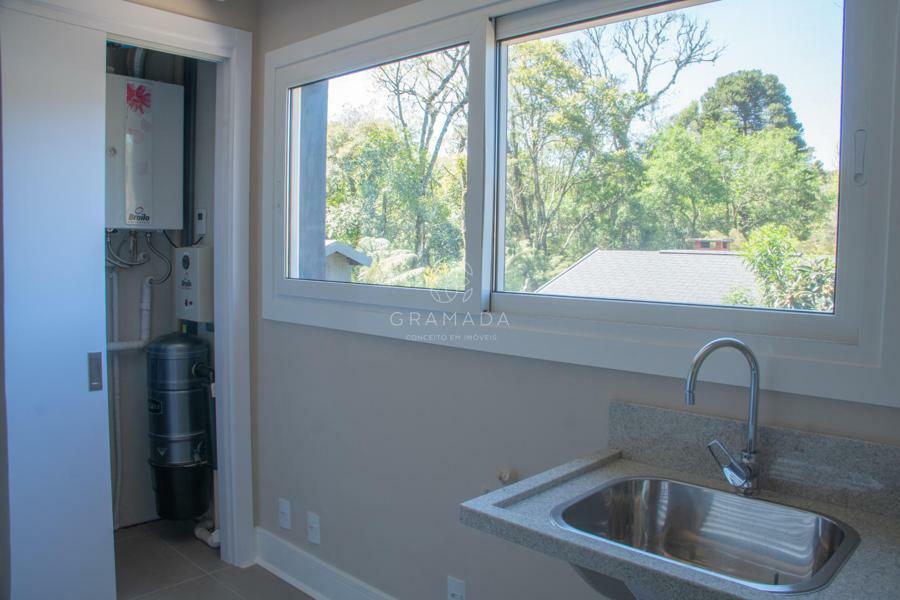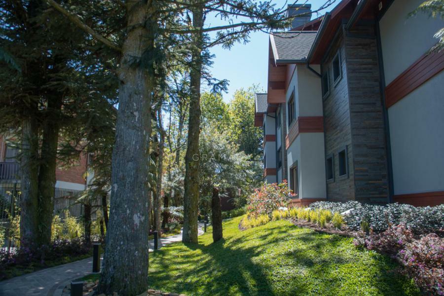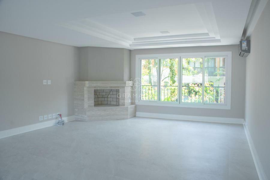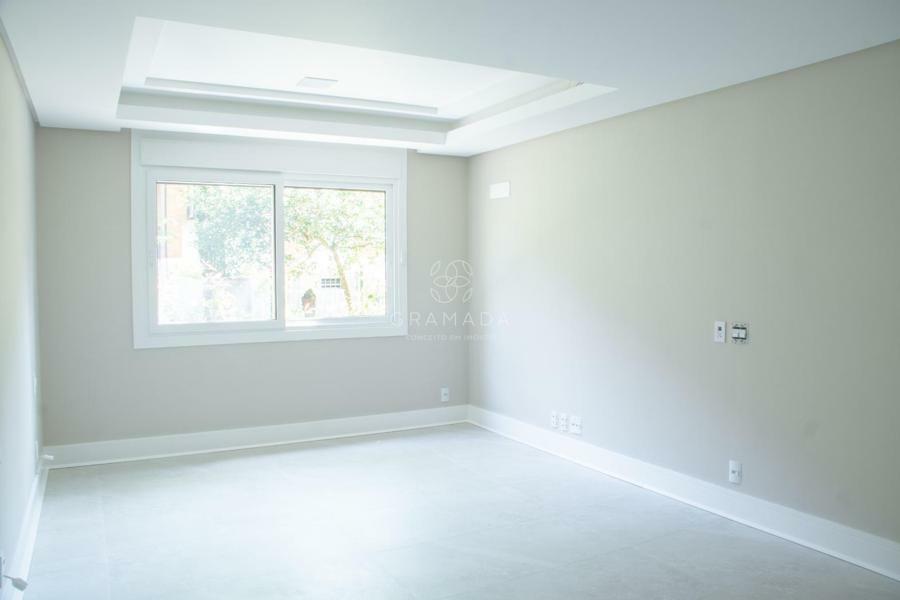 Ampla cobertura composta Ampla sala de estar com lareira, sala de jantar, cozinha, churrasqueira,área de serviço, despensa e três suítes. Esperas para split e sistema de calefação. Um diferencial interessante sobre o imóvel é que ele divide-se em duas partes, onde as suítes ficam dispostas da metade para um lado e as demais áreas sociais da metade para o outro, ambas ligadas por um corredor de acesso.