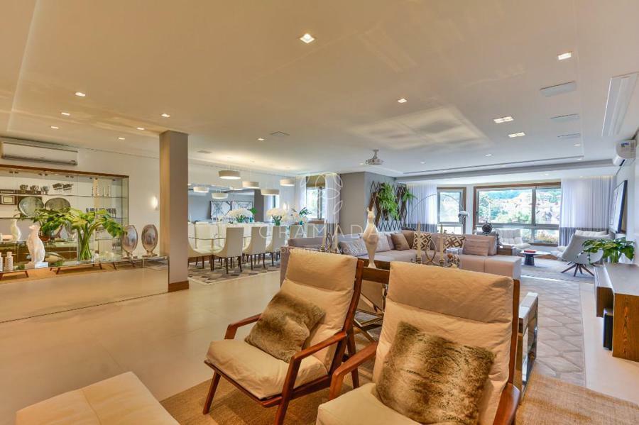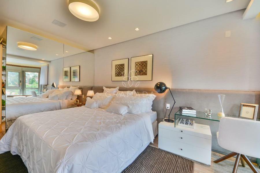 Sinônimo de elegância é este belo apartamento, composto de 4 suítes, sendo 1 suíte máster com closet, sacada integrada com uma linda banheira. Hall de entrada revestida em mármore, estar com uma linda lareira para aquecer os seus dias na serra, living 2 ambientes, sala de jantar, um encantador espaço gourmet com churrasqueira, adega, lavabo, cozinha separada, ampla área de serviço, dependência de empregada completa. Com automação entregue para você controlar pelo tablet ou celular as cortinas, temperatura, luzes e som de cada ambiente, esquadrias em alumínio/inox com vidros duplos. Duas vagas de garagem e um depósito individual.