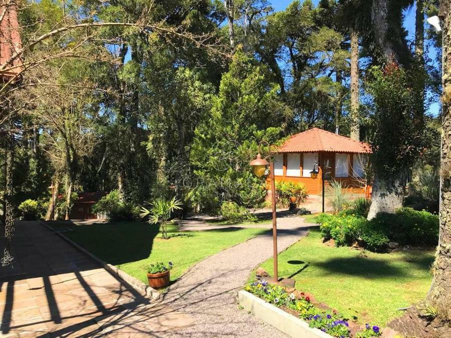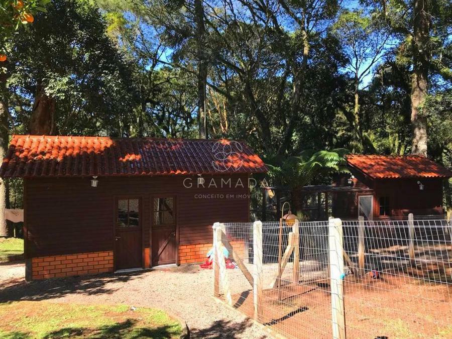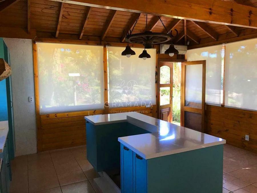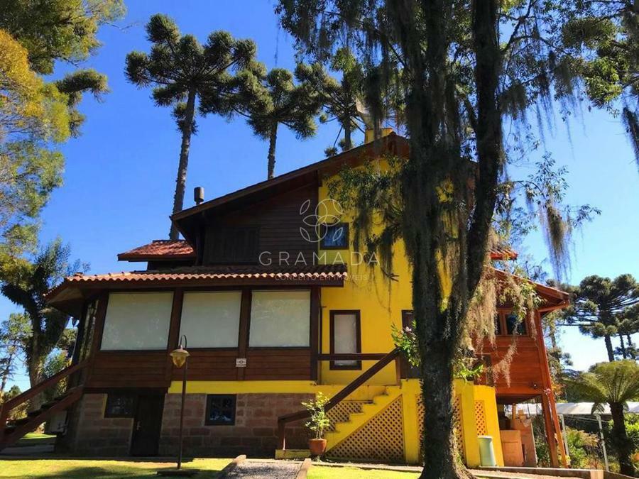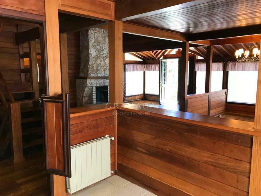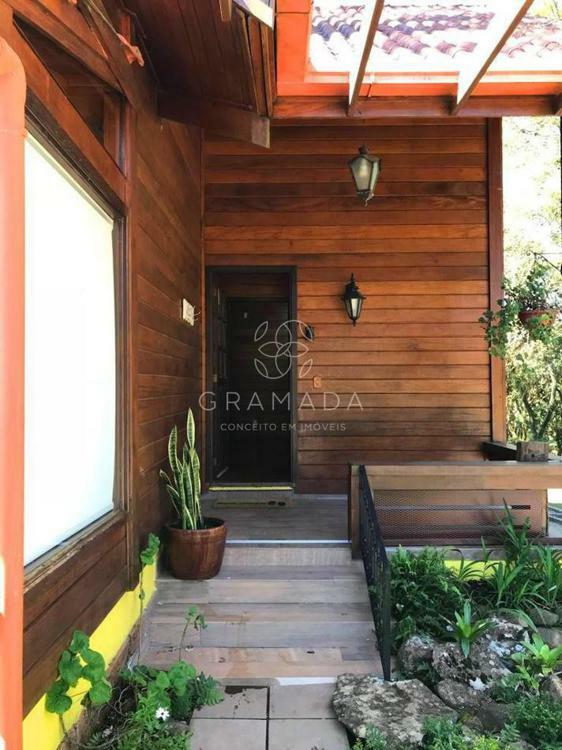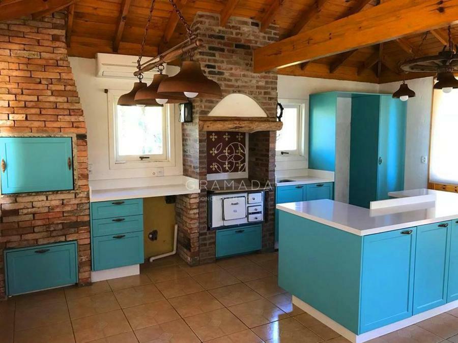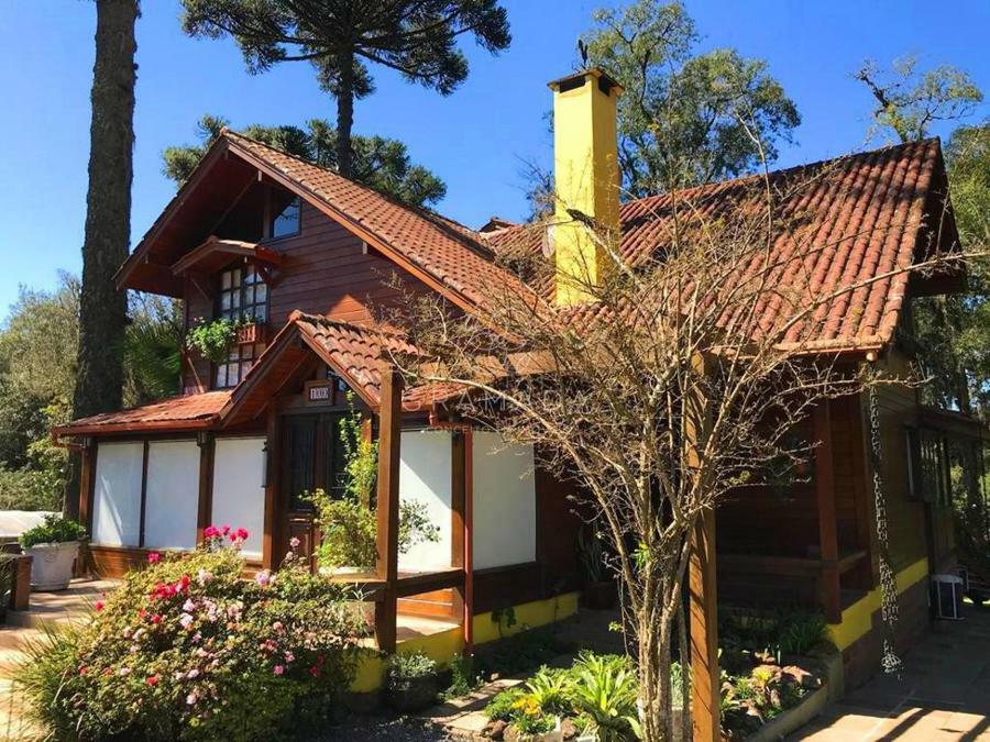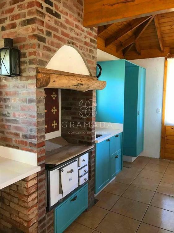A casa principal é distribuída em living dois ambientes com lareira, cozinha com móveis sob medida, área de serviço, adega, banheiro social, dois lavabos, mezanino e três dormitórios sendo um deles uma suíte.