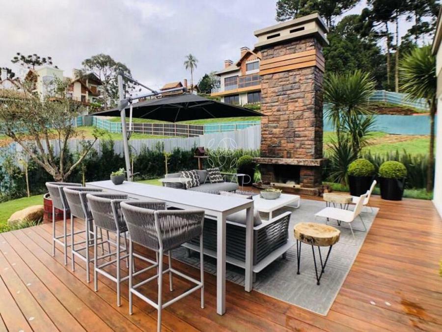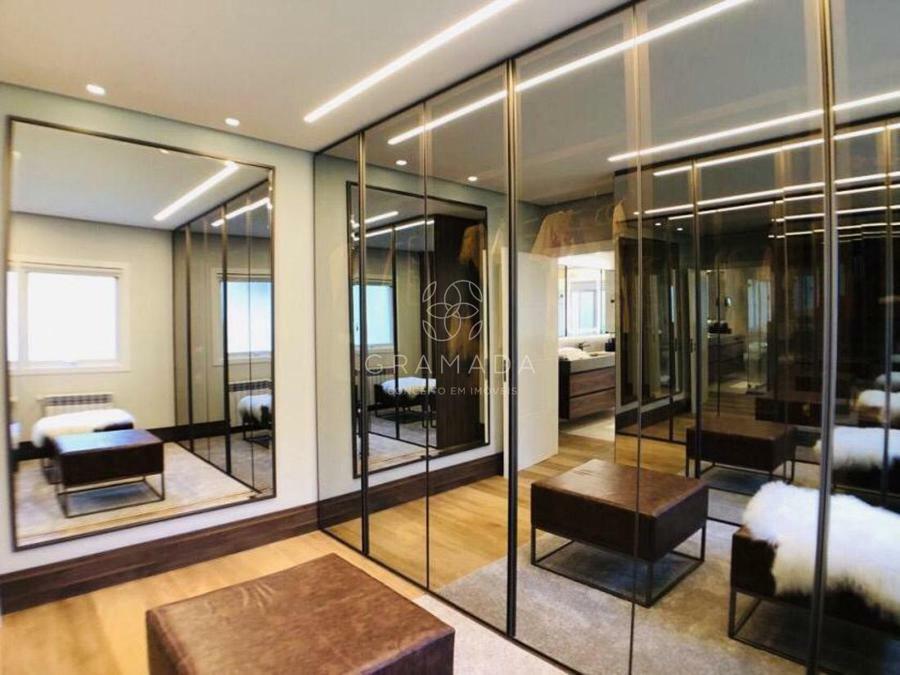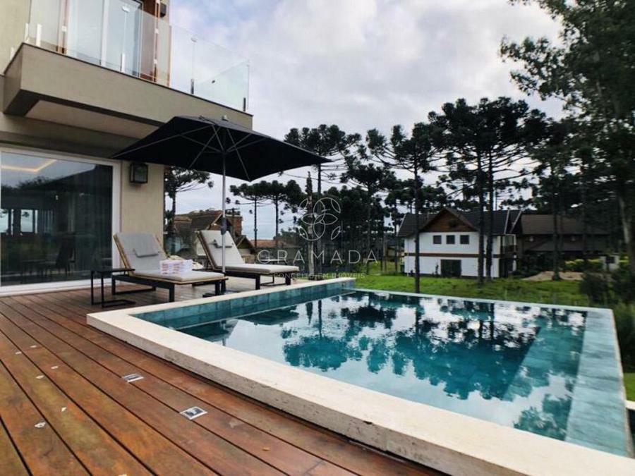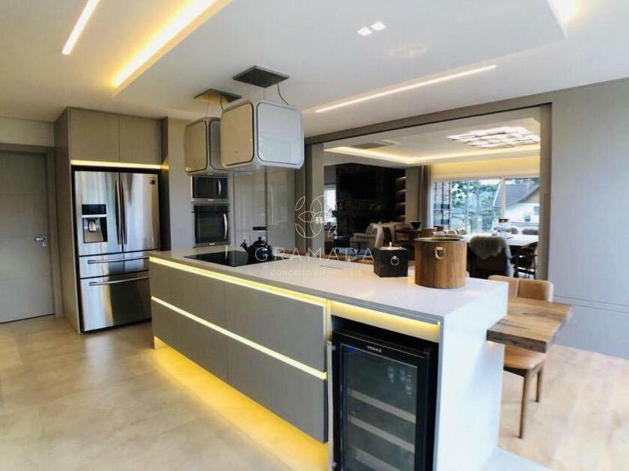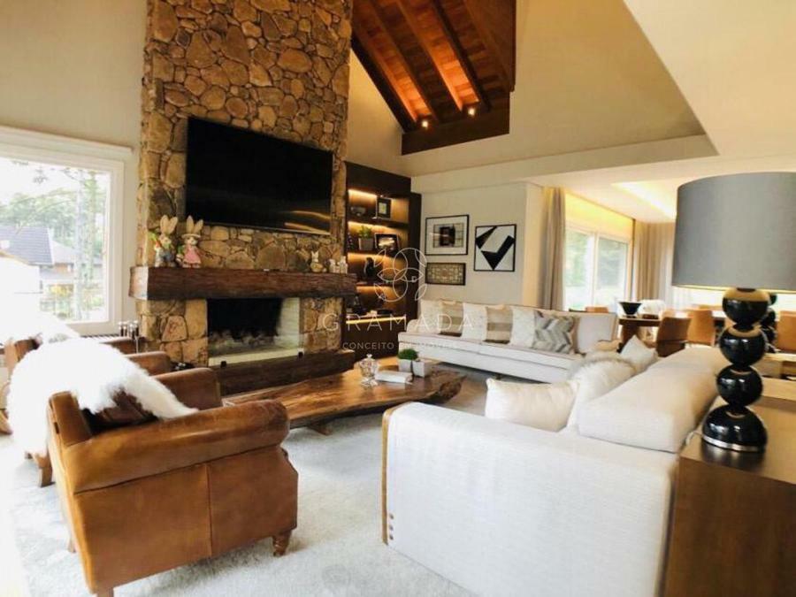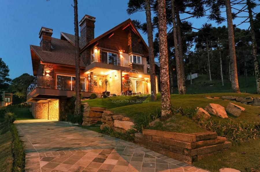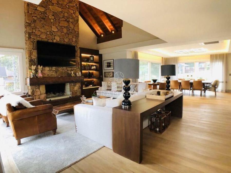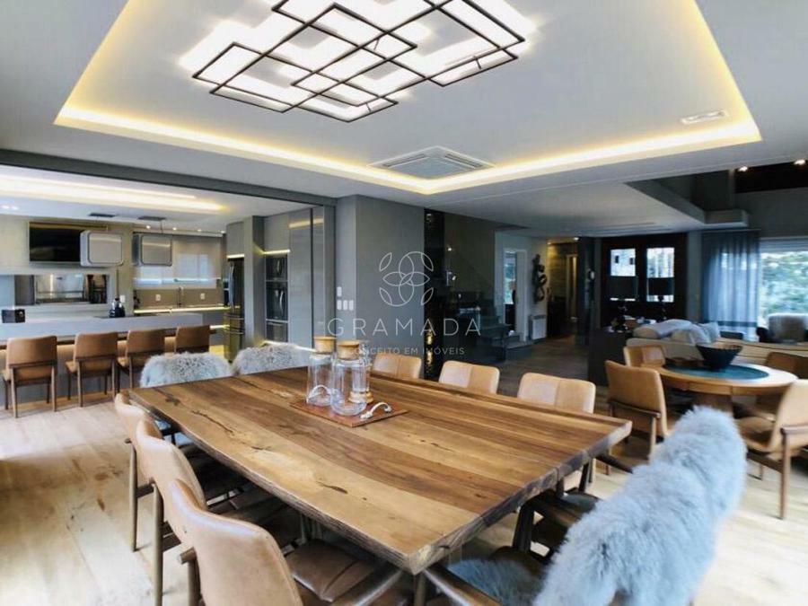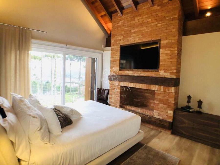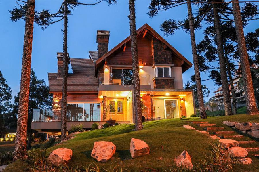 Essa magnífica residência de 4 suítes possui tudo que se pode esperar de um imóvel de luxo: uma vista espetacular, sofisticação, aconchego, conforto, segurança e privacidade. A suíte master é de tirar o fôlego, com sacada, lareira, closet, banheiro duplo e banheira de hidromassagem. Mais 03 suítes, sendo uma com lareira closet, uma com sacada e uma térrea com sacada, que também poderá ser usada como escritório. Todos banheiros com piso aquecido. Além das 4 confortáveis suítes, o imóvel também possui garagem para 3 carros, deck de madeira com piscina externa de borda infinita, lareira externa no deck. Churrasqueira com parrilha e bancada interna e uma bancada externa para o deck. Lindíssima adega, lavabo, dependência para empregada (suíte), lavanderia, depósito. Espera para calefação, aquecimento solar, espera para split em todos os ambientes. Toda madeira aparente em grapia, piso laminado e porcelanato. Espera para elevador. Aberturas em PVC com vidro duplo. Todos acabamentos de altíssimo padrão. Simplesmente espetacular!
