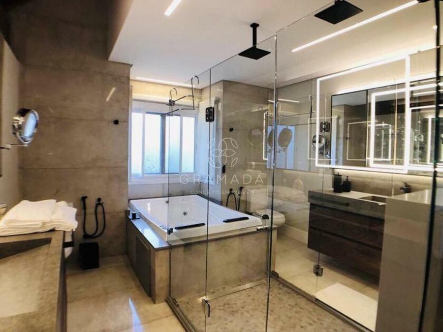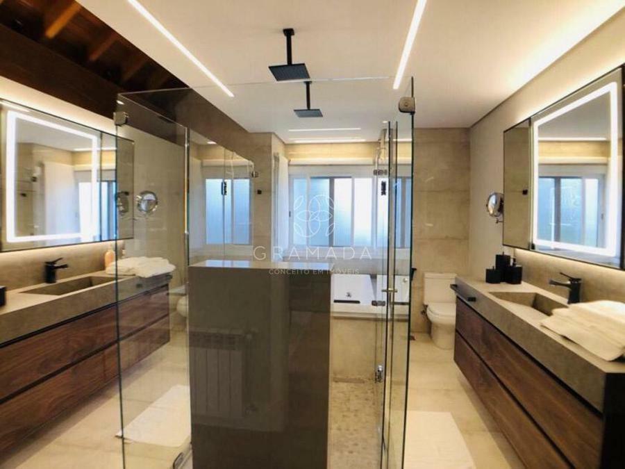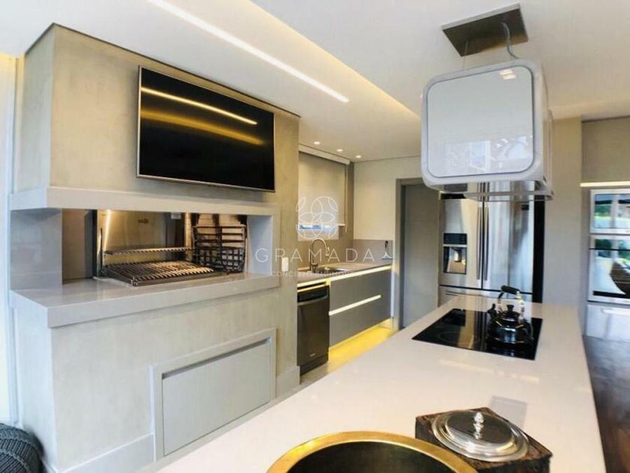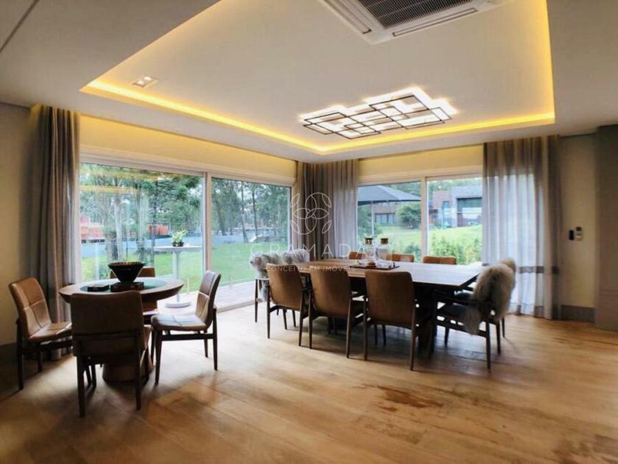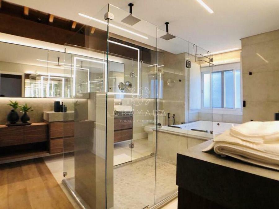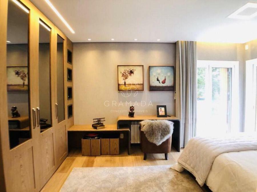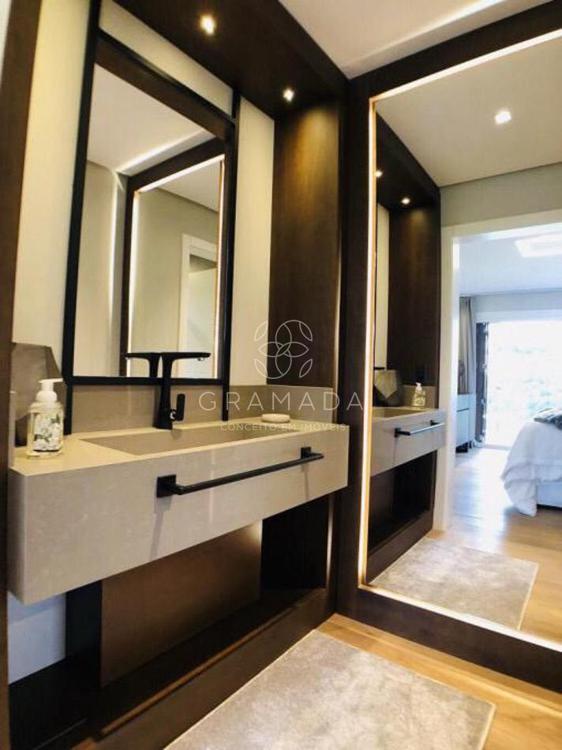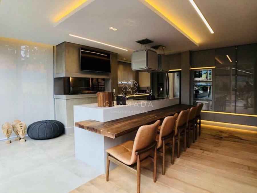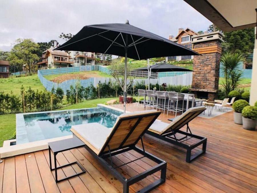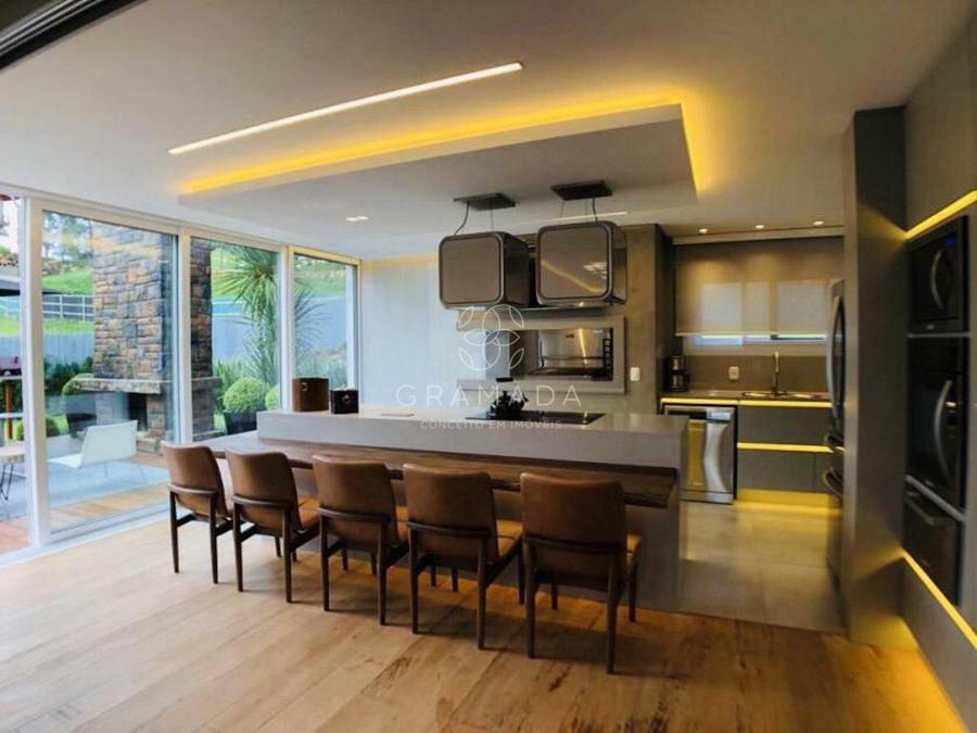 Essa magnífica residência de 4 suítes possui tudo que se pode esperar de um imóvel de luxo: uma vista espetacular, sofisticação, aconchego, conforto, segurança e privacidade. A suíte master é de tirar o fôlego, com sacada, lareira, closet, banheiro duplo e banheira de hidromassagem. Mais 03 suítes, sendo uma com lareira closet, uma com sacada e uma térrea com sacada, que também poderá ser usada como escritório. Todos banheiros com piso aquecido. Além das 4 confortáveis suítes, o imóvel também possui garagem para 3 carros, deck de madeira com piscina externa de borda infinita, lareira externa no deck. Churrasqueira com parrilha e bancada interna e uma bancada externa para o deck. Lindíssima adega, lavabo, dependência para empregada (suíte), lavanderia, depósito. Espera para calefação, aquecimento solar, espera para split em todos os ambientes. Toda madeira aparente em grapia, piso laminado e porcelanato. Espera para elevador. Aberturas em PVC com vidro duplo. Todos acabamentos de altíssimo padrão. Simplesmente espetacular!