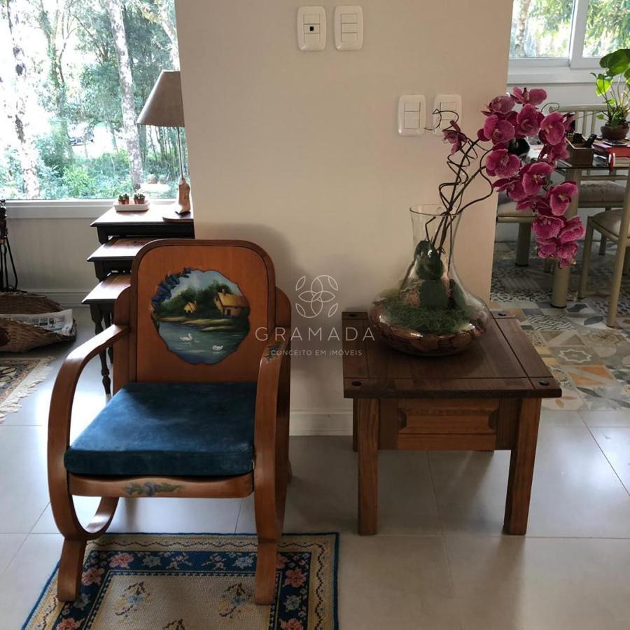 Térreo: Living 2 ambientes com lareira, cozinha integrada com churrasqueira, sala de jantar, área de serviço, lavabo, escritório (o qual pode ser usado como mais 1 dormitório), 2 suítes, sendo uma master com hidromassagem, closet e sacada.
